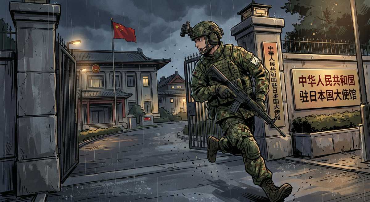 2026年3月24日、東京都港区にある在日中国大使館の敷地に、現役の陸上自衛隊幹部が刃物を持って侵入したとして逮捕される事件が発生した。日中関係がすでに緊張状態にあるなか、両国政府が「容疑者の言動」について正反対の内容を公表するという異例の展開となっている。